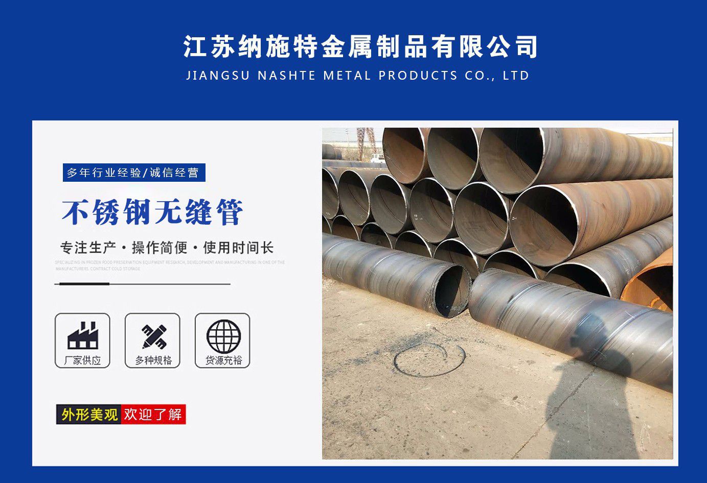 江蘇納施特金屬制品有限公司是一家集生產(chǎn)205不銹鋼無縫管,2507不銹鋼無縫管,316l不銹鋼焊管廠家,不銹鋼工業(yè)焊管廠家,厚壁無縫鋼管廠家等產(chǎn)品,公司庫存多規(guī)格齊全、質量保證。公司一貫以服務至上、質量至上、價格合理、客戶至上、讓利客戶、薄利多銷為原則,誠實守信為宗旨。 公司秉承“優(yōu)質的品質和服務創(chuàng)造企業(yè)品牌”之宗旨,與國內外多家知名廠商建立了長期穩(wěn)定的合作伙伴關系,精心匯聚各廠商的品牌產(chǎn)品,實現(xiàn)了資源互補,以適應市場的不同需求,協(xié)助廣大廠商提高自身的競爭力,是您的理想合作伙伴。 公司下屬:業(yè)務部、財務部、快運部、運輸部、倉儲部、加工部、(自備貨車、吊車、行車、自動切割、半成品)免費為用戶提供裝卸等一條龍服務。保證用戶利益、互惠互利做生意、誠心誠意交朋友。 服務承諾:提供優(yōu)質的不銹鋼及有關產(chǎn)品,遵守道德標準,努力提供獨特的產(chǎn)品和高水平服務。 質量承諾:隨時為客戶提供產(chǎn)品和服務,充分領會客戶要求,盡職盡責,永無例外,竭盡全力,持續(xù)發(fā)展。 公司秉承:“顧客至上,銳意進取”的經(jīng)營理念,堅持“客戶至上”的原則為廣大客戶提供優(yōu)質的服務。 愿我們公司和社會各界同仁、諸位朋友、尊貴的各位客戶攜手并進,共同發(fā)展,同繪新世紀的宏偉藍圖! 公司宗旨:優(yōu)質的品質和服務創(chuàng)造企業(yè)品牌。 經(jīng)營理念:以...